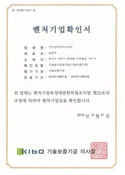 선우인더스트리 인증 및 특허현황입니다.